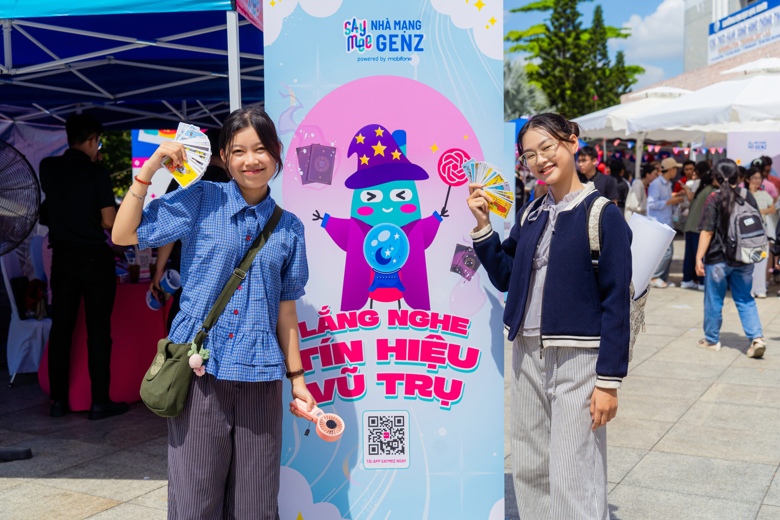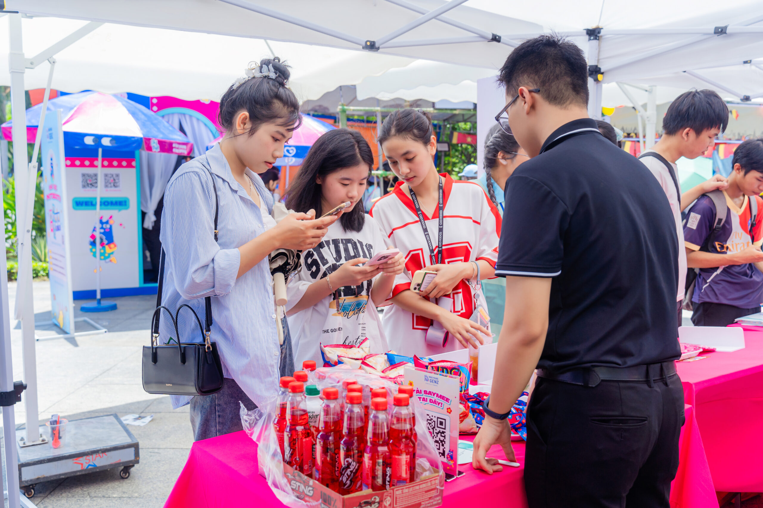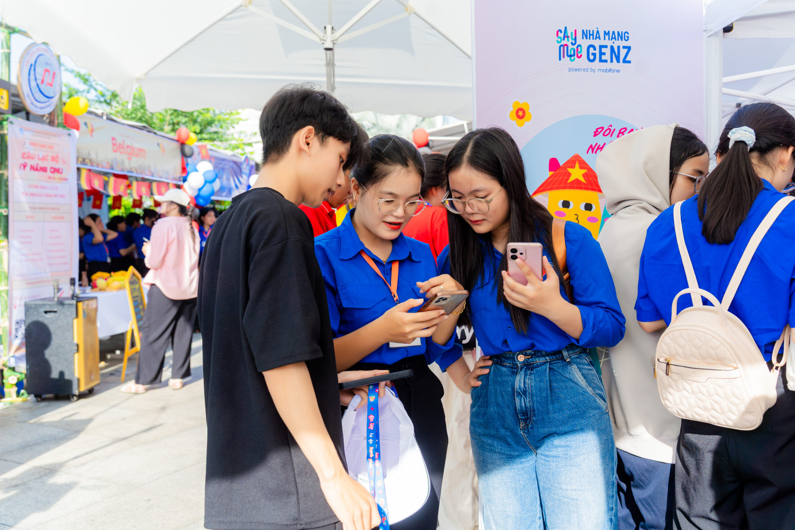 Ngay từ sáng sớm, khu vực tổ chức chương trình đã nhộn nhịp với dòng người đổ về tham gia. Tại đây, các gian hàng check-in, minigame và trải nghiệm công nghệ trở thành điểm nhấn thú vị, giúp các bạn trẻ lưu giữ những khoảnh khắc ấn tượng cùng bạn bè.