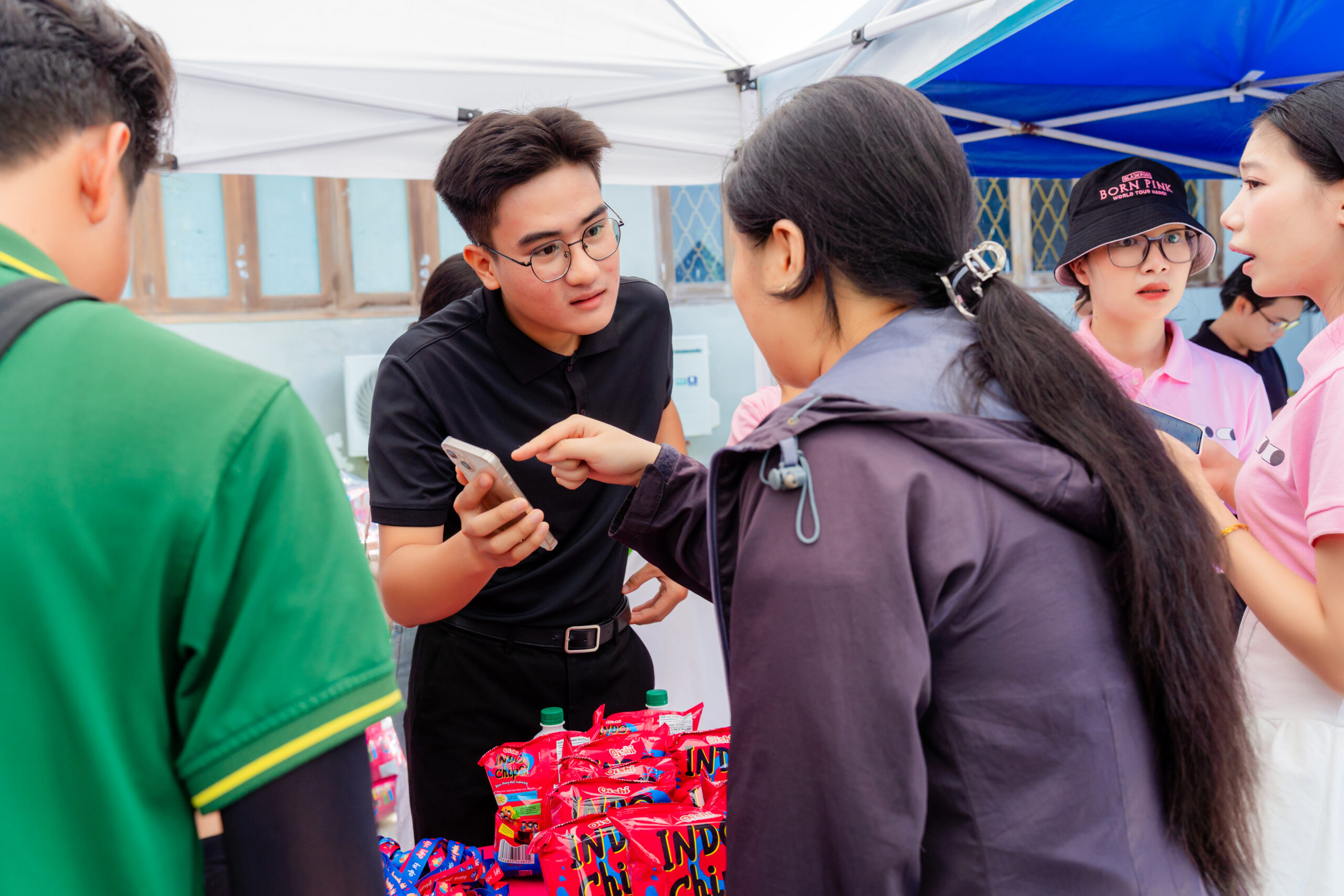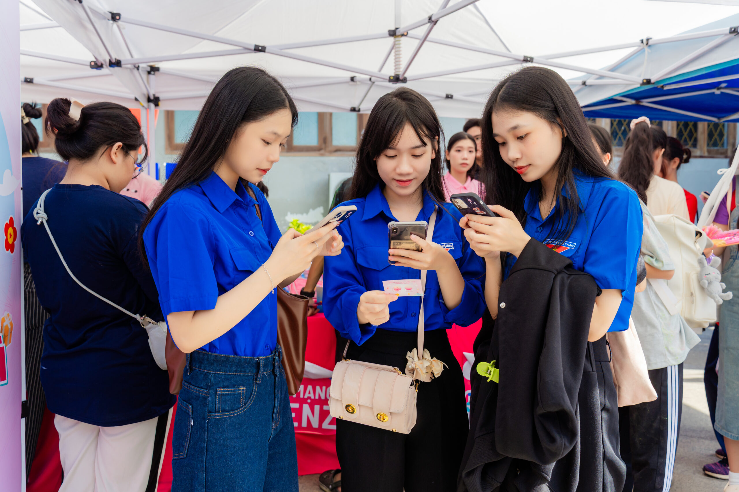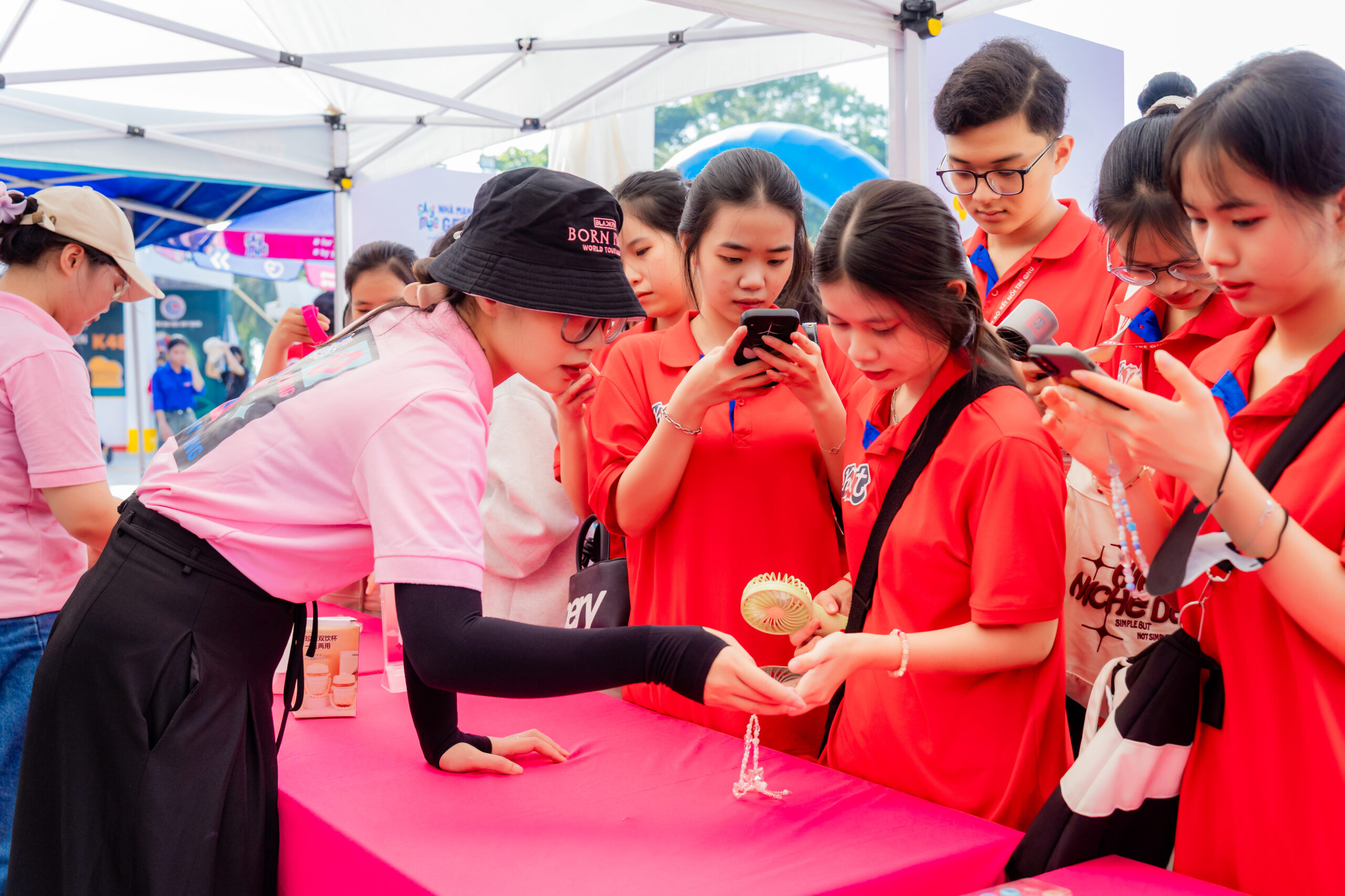 Ngay từ sáng sớm, khu vực tổ chức chương trình đã nhộn nhịp với dòng người đổ về tham gia. Tại đây, các gian hàng check-in, minigame và trải nghiệm công nghệ trở thành điểm nhấn thú vị, giúp các bạn trẻ lưu giữ những khoảnh khắc ấn tượng cùng bạn bè.