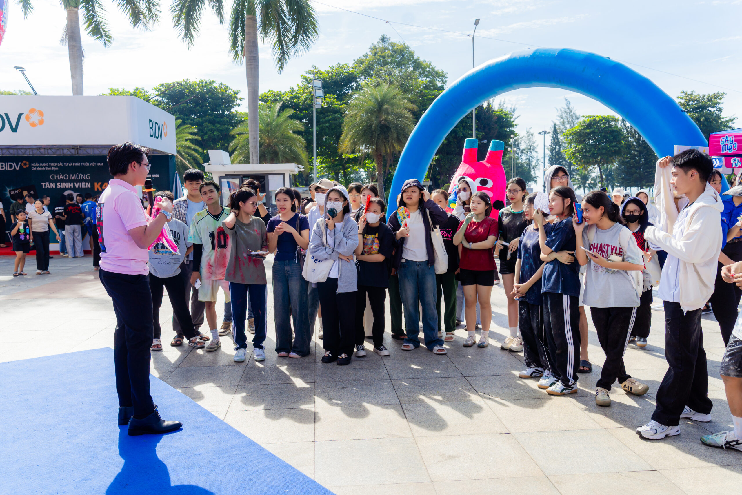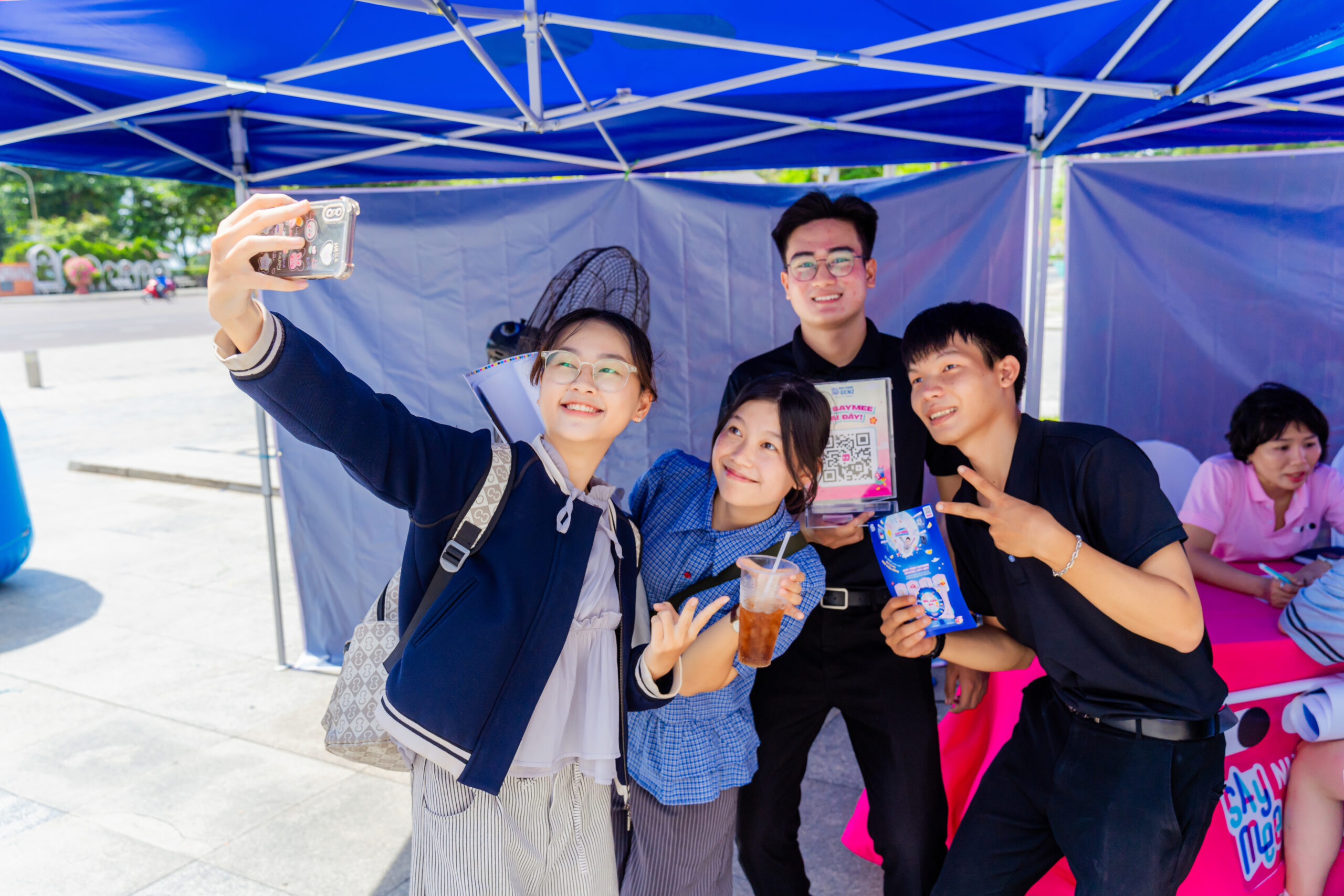 Trong buổi chụp ảnh sự kiện, ống kính QMedia Quy Nhơn đã ghi lại trọn vẹn bầu không khí náo nhiệt, sắc màu rực rỡ và nụ cười rạng rỡ của các bạn trẻ Gen Z khi tham gia thử thách, check-in và nhận quà tặng hấp dẫn.